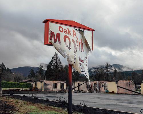 Burton captures the decadence and loneliness of rural American landscapes, in which the presence of man’s activities such as pylons or signs often sound like a disturbing element, errors in the landscape.