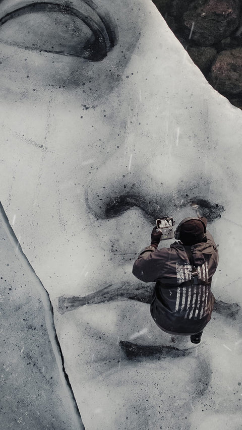 David Popa is an earth artist and aerial photographer born and raised in New York City and currently based in Finland. His interest in the arts spawned from a tight mentorship with his Father Albert Popa, one of the first graffiti writers in NYC. His interest in street art and contemporary muralism was the catalyst for the work he presently creates. His current body of work uses all natural pigments mixed only with the source water to create site-specific, ephemeral earth-works captured through the eye of a drone. The large-scale work Popa paints, mostly on islands/islets in the nordic region, are documented and portrayed through award winning photography and short films.