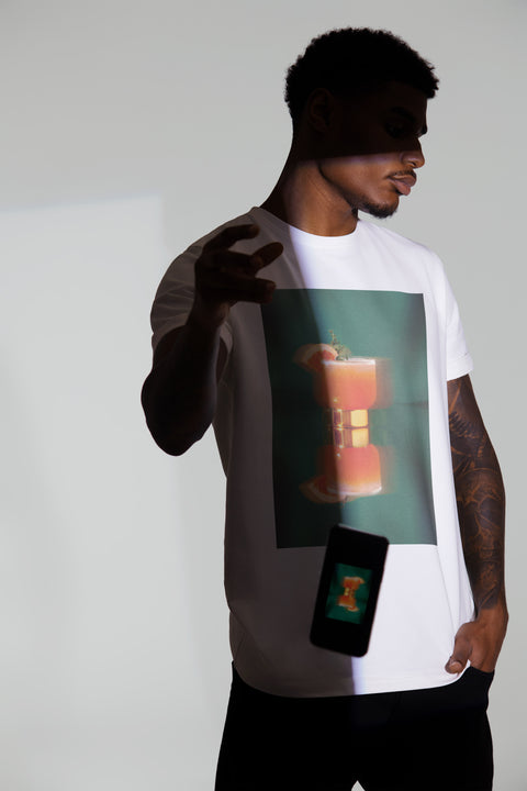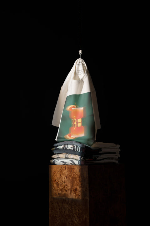 We sustainably craft every piece made-to-order with premium materials—just like custom printed and framed photography. No blanks. No screen printing. We use silver gelatin particles and dye, injected through a museum grade direct-to-fabric printer. Shirts are sewn in the US at living wages.